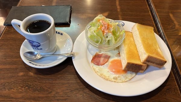 桜を楽しんだ後はいつもの和食の朝食セットを…と思ったんですが、今回はちょっと気分を変えて洋風に、尾道浪漫珈琲さんのモーニングセットにしてみました。