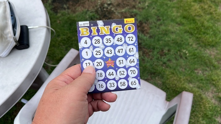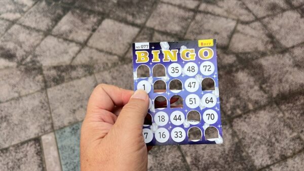 行列に並んで購入…と思ったら同じタイミングでビンゴ大会のカードの販売も
