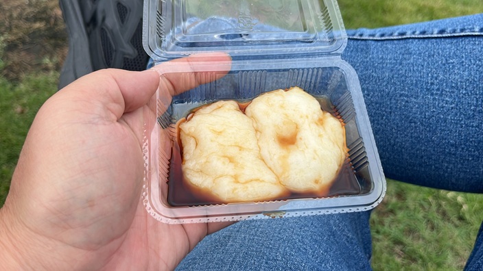 無事にカードゲットしたところで、つきたて餅購入、2個100円です。