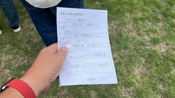 なんかみんな梨もらってるなぁ…と思ったらクイズラリーで梨が貰えるとの事。