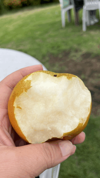 頂いた梨は軽く洗ってガブリ!、やっぱこの食べ方が一番美味しいですよねぇ。