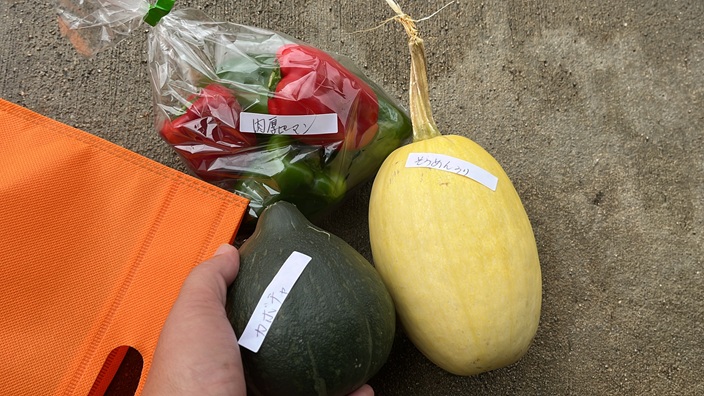 中はハロウィンという事でかぼちゃをメインにいろんな野菜の詰め合わせでした。