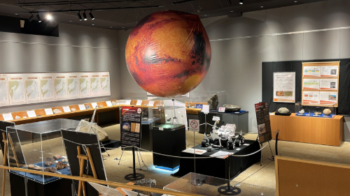 今回のメインの火星探査機のコーナー、おっきな火星が浮かんでます。