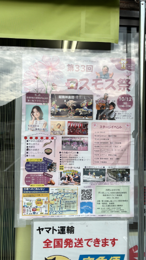 コスモス祭りのポスター、あれ?司会のお姉さんがお兄さんになるんですねぇ。