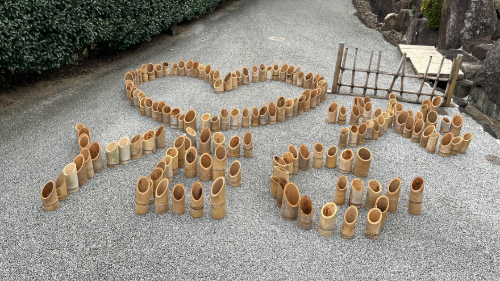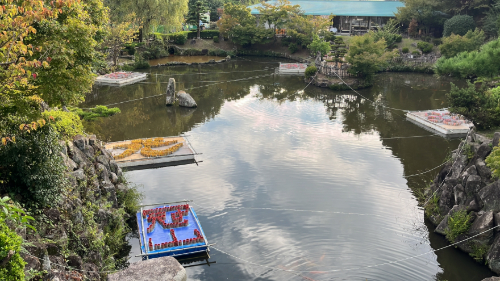 池には筏が浮かんでて既にいろんな文字が(w