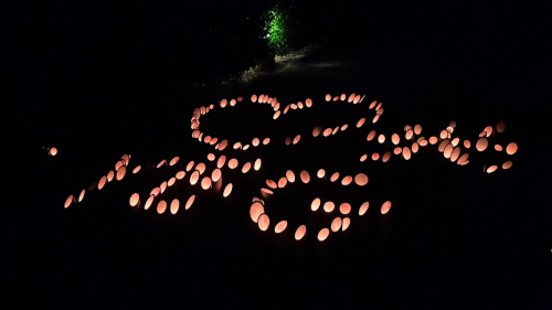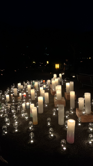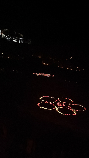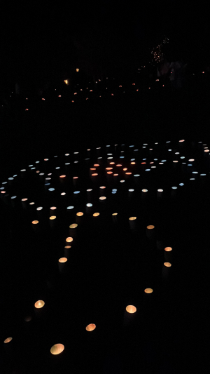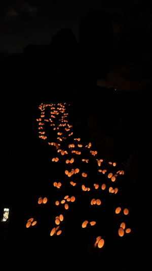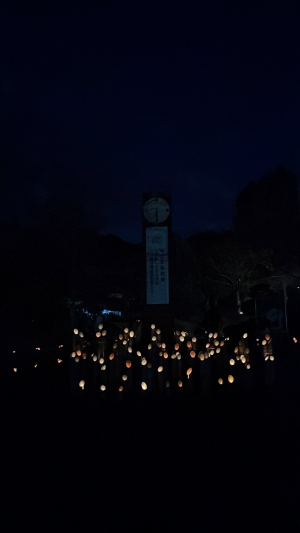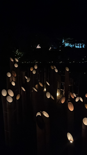暗くなって竹灯籠も綺麗〜、いろんな色で様々な模様とか浮かび上がってきます。