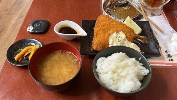 映画2本観たらすっかりお昼、尾道商店街のお店でアジフライ定食を頂きました。