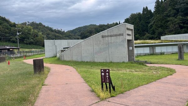 ビデオ観た後は一旦外へ…展示室の入口はありますが建物は無い??