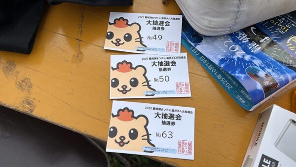書道パフォーマンス堪能した後は大抽選会の抽選券を頂きましょ~。