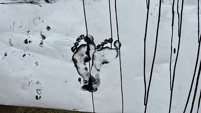 会場をうろうろしてたらさっきの書道パフォーマンスの作品が飾られてました。