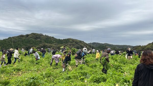 開園時間とともにみんな大根畑へとダッシュ、抜いたら必ず購入という事で抜く前に