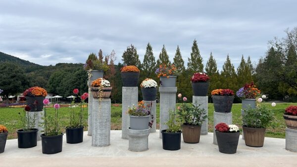こちら、きれいなお花がかわいい白いネコに飾ってありました。