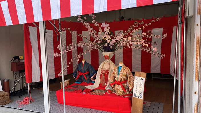 という事で、母衣の衣装も展示中~、本番の時は無くなるのかな?
