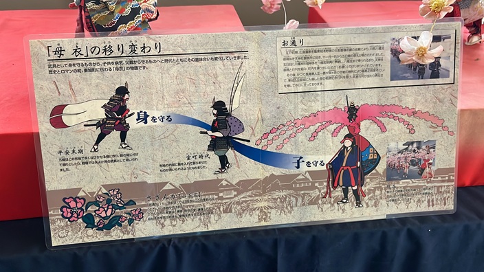 母衣人形もたくさん飾ってありました。もともとは後ろからの矢を防ぐための武具だった
