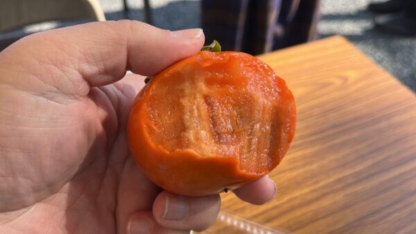 お腹空いた~という事でお弁当買ったら柿も付いてきました。