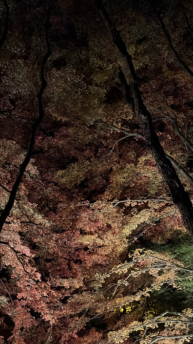 闇の中に浮かぶ紅葉、見上げているとなんか吸い込まれそうになります。