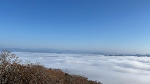 枯葉を踏みしめながら展望台へ…今回はばっちり霧の海~!