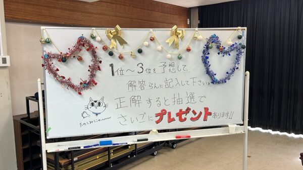 1~3位を当てるクイズ、見事当てると豪華賞品がゲットできるそうです。