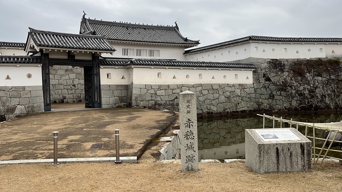 奥の建物の周りにはずらっと赤穂事件のいきさつがパネルで展示。