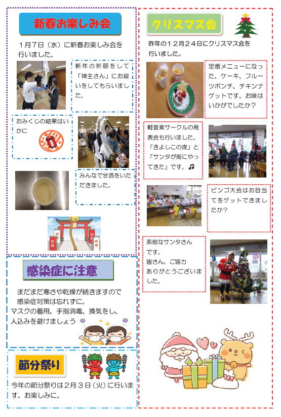 イベントはクリスマスに新春お楽しみ会、年末年始感満載です。