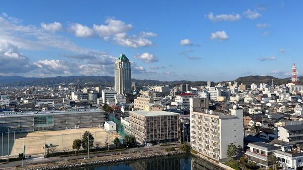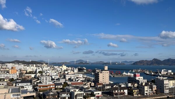 一番上の展望室からは今治の町並みが一望できました、遠くしまなみ海道の橋も