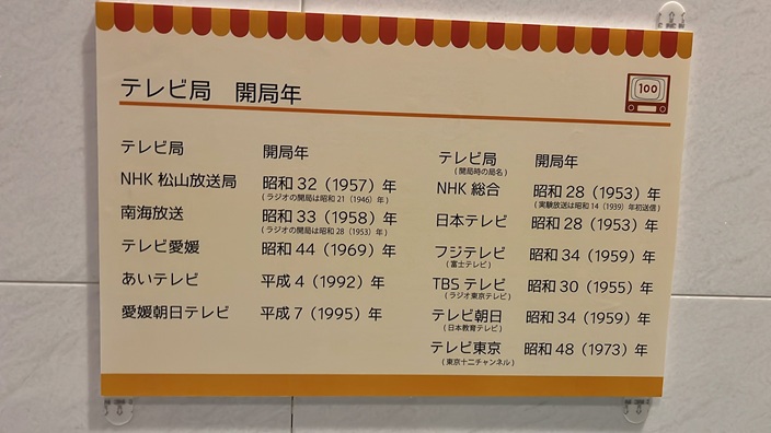 愛媛のテレビ局の開局年が掲示されてました。