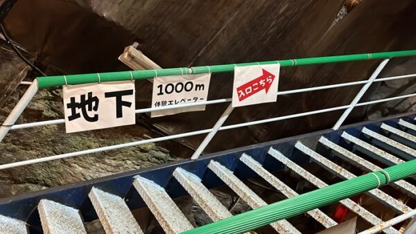 地下1000メートルまで降りれるエレベータもありますが、何故か帰りはエレベータ