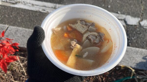 天気はいいんですがやっぱ寒い~、という事でとんがらしマシマシの豚汁で暖を取ります。