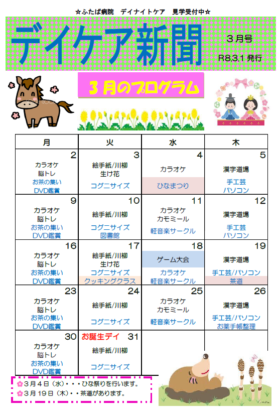 デイナイトケア発行の「デイケア新聞」3月号が発行されました。