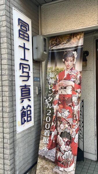 写真館には綺麗どころの振袖の写真…と…社長さん何やってるんですか(w