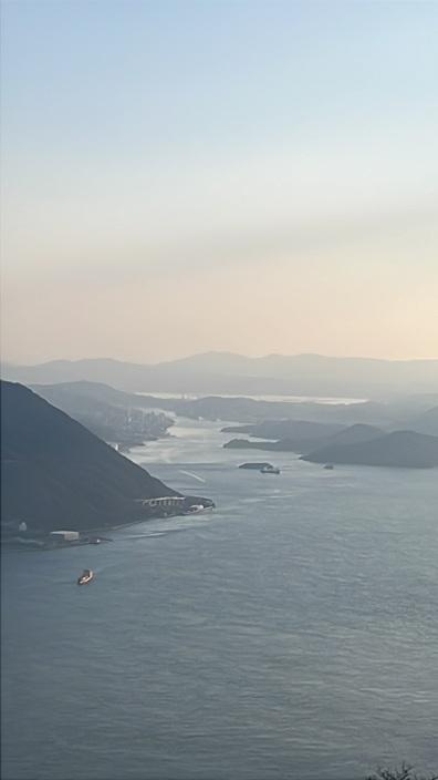 竜王山よりちょっと低い感じですかね。しまなみ海道の橋とか観えました。