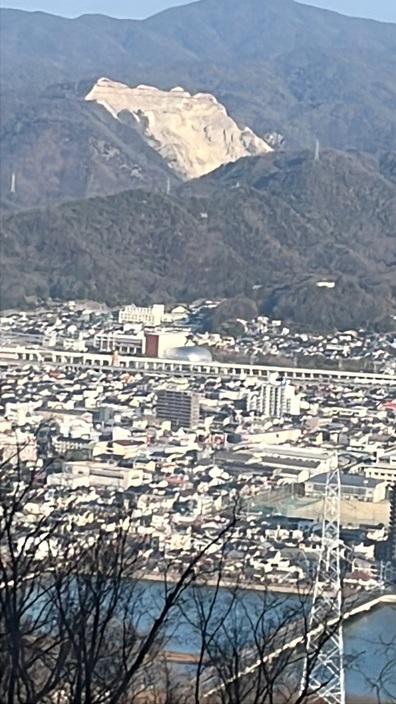 テクテクと山道を歩いて行くと下の方にこの後行く鏡餅…もとい三原芸術文化センター