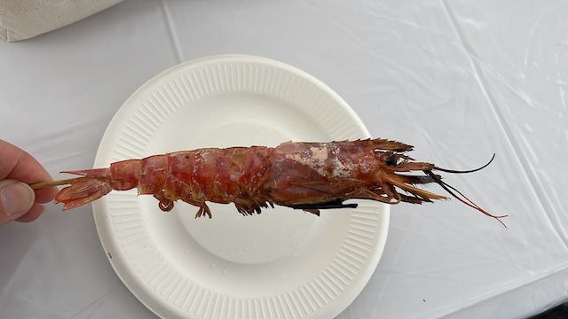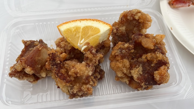 続いてエビと唐揚げもいただきました。朝から食道楽しまくりです。