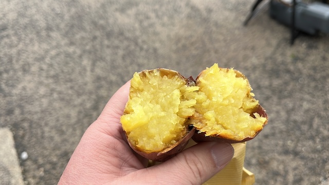 昨日は夕方だったんでやってなかった焼き芋屋さん営業中、美味しくいただきました。