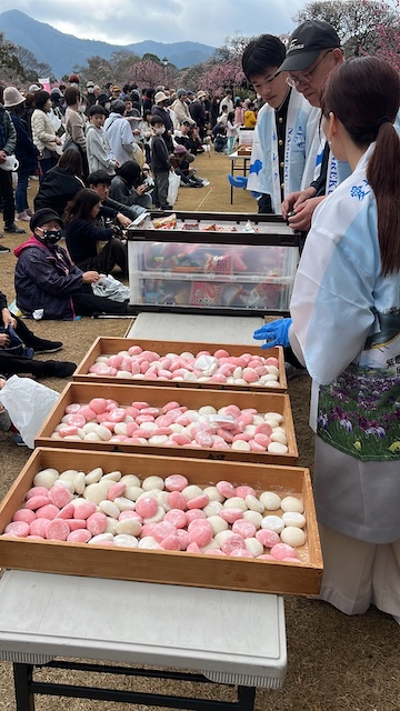続いてはこちらも毎年恒例の梅の種飛ばし競争。